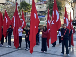 Program Cumhuriyet Meydanı’nda İlçe Milli Eğitim Müdürlüğü tarafından Atatürk Anıtı’na çelenk sunulmasıyla başladı. Saygı duruşu ve İstiklal Marşı’nın okunmasının ardından tören Barış Manço Kültür Merkezi’ndeki kutlama programıyla devam etti.
