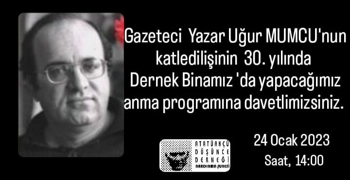 ADD Bandırma Şubesi tarafından yapılan açıklamada, “30. Adalet ve Demokrasi Haftası’nda, emperyalizm ve hain işbirlikçilerinin aramızdan aldığı devrim şehitlerini saygıyla anıyoruz. Bu bağlamda, araştırmacı ve gazeteci yazar, ‘Kalpaksız Kuvay-ı Milliyeci’ Uğur Mumcu’nun, cumhuriyet düşmanlarınca katledilişinin 30. Yıldönümü olan 24 Ocak 2023 Salı günü, saat 14.00’te, dernek binamızda anma programı düzenleyeceğiz” denildi.