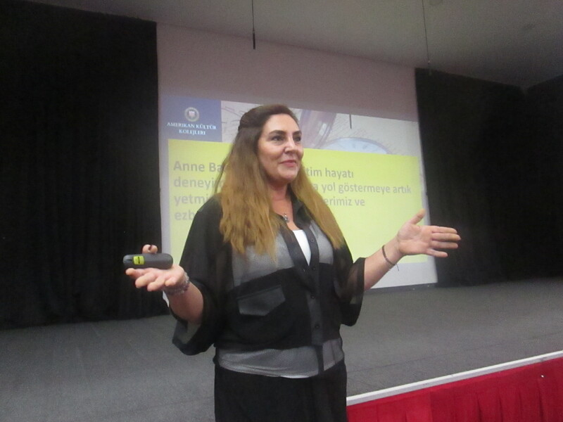 İlk konuşmacı, Amerikan Kültür Kolejleri Uluslararası Programlar ve İşbirlikleri Eğitim Danışmanı Gamze Önem, “Değişen eğitim sistemi ve İngilizce” konusunda düşüncelerini açıkladı.