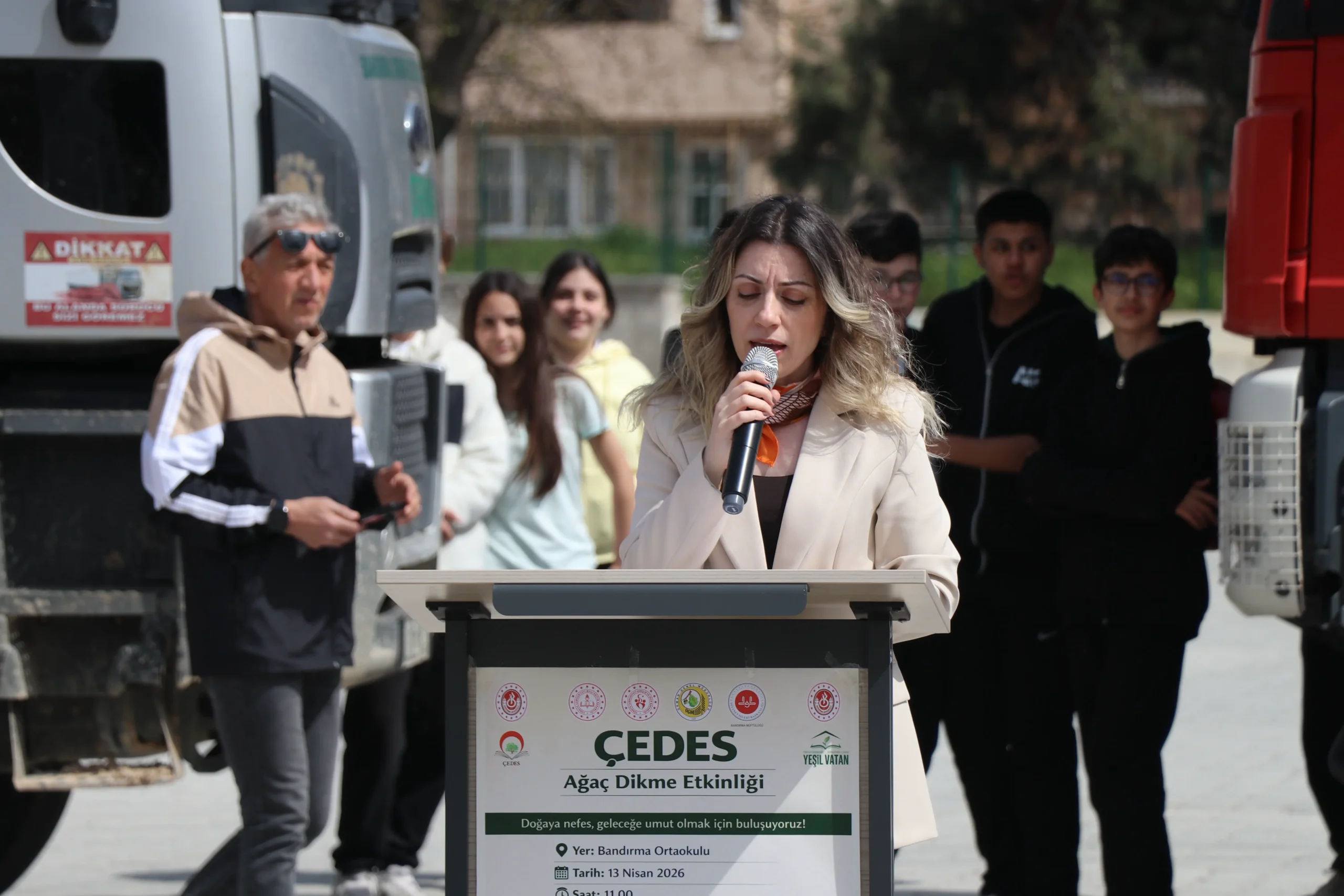 Bandırma’da ÇEDES projesi kapsamında düzenlenen ağaç dikme etkinliği; öğrenciler, öğretmenler ve velilerin katılımıyla Bandırma Ortaokulu’nda gerçekleştirildi. Etkinliğin açılış konuşmasını gerçekleştiren Bandırma İlçe Eğitim Müdürü Mutlu Aslan, “Doğayı sevgisinin, çevre duyarlılığının ve yeşili sevmenin tekrar hatırlatılması maksadıyla fidan dikimi etkinliklerini düzenliyoruz.” dedi. Doğaya nefes, geleceğe umut olmak amacıyla düzenlenen etkinlikte katılımcılar, çevre bilincine dikkat çekerek fidanları toprakla buluşturdu.