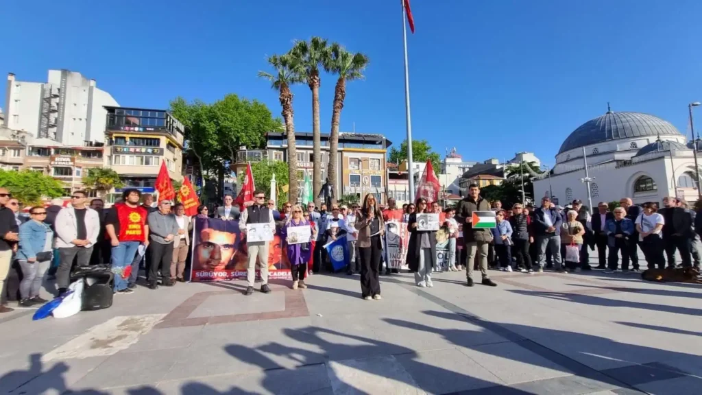 “Siyonist İsrail devletinin işgali altındaki Filistin halkı bir soykırımla yüz yüzeyken, Ortadoğu bütünüyle bir savaş meydanına çevrilirken, emperyalistler silahlanma harcamalarıyla halkaların geleceğine ipotek koyma yarışındayken, Türkiye’deki bütün yeraltı ve yerüstü kaynakları İliç’te olduğu gibi emperyalist tekellere peşkeş çekiliyor, emperyalistlerin işbirlikçisi tek adam yönetimi NATO’culuğundan ödün vermiyor, Türkiye’yi emperyalist savaş örgütleri ve tekellere daha bağımlı hale getiriyor. Ucuz işgücü, kuralsız çalışma, sendikasızlaşma, baskı ve zor aygıtlarıyla Türkiye’yi emperyalizme “sömürü cenneti” olarak sunanların karşısında Denizlerin mücadelesi, yalnızca idamlarının yıldönümü olan 6 Mayıs’ta tarihin tozlu sayfalarından yılda bir gün çıkarılarak hatırlanacak bir anma gününün ötesinde, anti-emperyalizm bayrağını yükselttiğimiz gündür. Taksim’i anayasayı hiçe sayarak işçi ve emekçilere yasaklayanlar, gözaltı ve tutuklama terörüyle büyük sermayenin emekçi sınıflara yönelik saldırı dalgasını büyütenler; Denizlerin denize döktüğü 6. Filo’ya secde edenlerin soyundandır. Bu memleketi ABD emperyalizminin, yerli işbirlikçilerinin çiftliği yapmaya çalışanlara müsaade etmeyeceğiz. Denizerin yolunda ilerlediğimiz mücadelemizle demokratik, tam bağımsız Türkiye’yi kuracağız!” dedi.