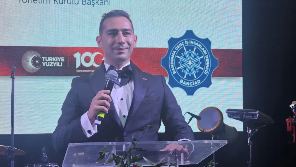 BANGİAD Yönetim Kurulu Başkanı Kürşad İpek gecenin açılış konuşmasını yaptı. İpek, “Bu enerji, Ulu Önder Mustafa Kemal Atatürk’ün ‘Bütün ümidim gençliktedir’ sözünün en güzel yansımasıdır. Her biri, kendi alanında başarı hikayeleri yazıyor ve biz her zamankinden daha güçlü ilerliyoruz.Bu özel gecede yalnızca geçmişin başarılarını kutlamıyoruz; aynı zamanda geleceğe olan inancımızı ve çabalarımızı pekiştirmek için buradayız. Kıymetli Cumhuriyetimizin bizlere açtığı yolda, Ulu Önderimiz Mustafa Kemal Atatürk’ün dediği gibi, ‘Yerinde duran, geriye gidiyor demektir.’ Bizler, daima ileriye adımlar atarak Bandırmamız ve ülkemiz için çalışmaya devam edeceğiz.Bu gece için emek veren tüm yol arkadaşlarıma, BANGİAD ailesine ve siz değerli katılımcılara huzurunuzda bir kez daha teşekkür ediyorum. Hep birlikte daha güzel yarınlar ve parlak bir gelecek inşa edeceğimize olan inancım tamdır. Son olarak, şahsım ve derneğim adına büyük bir gururla ifade etmek isterim ki: ‘Ey büyük Atatürk! Açtığın yolda, gösterdiğin hedefe durmadan yürüyeceğimize ant içeriz!'”dedi.