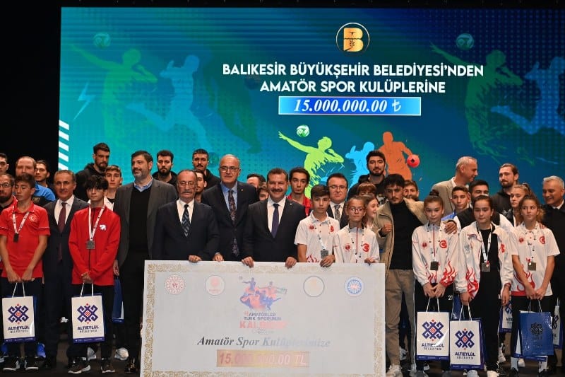 ‘Amatör Spor Haftası Kapanış Töreni’ ve ‘Mahalle Ligi Paneli’ne katılan Balıkesir Büyükşehir Belediye Başkanı Yücel Yılmaz, 317 kulübe söz verdiği 15 milyon liralık desteği yerine getirdi. Başkan Yılmaz, turnuvayla 20 ilçede 40 bin çocuğa ulaşmayı hedeflediklerini söyledi.