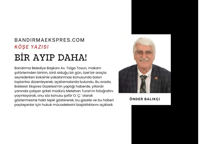 Bandırma Belediye Başkanı Av. Tolga Tosun, makam şoförlerinden birinin, izinli olduğu bir gün, özel bir araçla seyrederken kokainle yakalanması konusunda basın toplantısı düzenleyerek, açıklamalarda bulundu. Bu arada, Balıkesir Ekspres Gazetesi’nin yaptığı haberde, yıllardır yanında çalışan şirket müdürü Metehan Turan’ın fotoğrafını yayınlayarak, onu söz konusu şoför O. Ç.’ olarak göstermesine haklı tepki göstererek, bu gazete ve bu haberi paylaşanlar için hukuk mücadelesini başlattıklarını açıkladı.