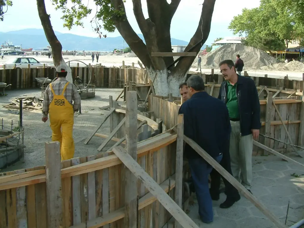 Yonca yaprağı görünümündeki Cumhuriyet Meydanı’ndaki süs havuzu Cemal Öztaylan’ın 2004-2006 yılları arasında Bandırma Belediye Başkanı görevi sırasında 13 Haziran 2006 tarihinde yapıldı. Mimarı da sanıyorum daha sonra milletvekili seçilen Cemal Öztaylan’dan sonra 2006 yılında Belediye Başkanı seçilen Mimar Recep Eraydın olmalıydı; çünkü fotoğrafta O da var…
