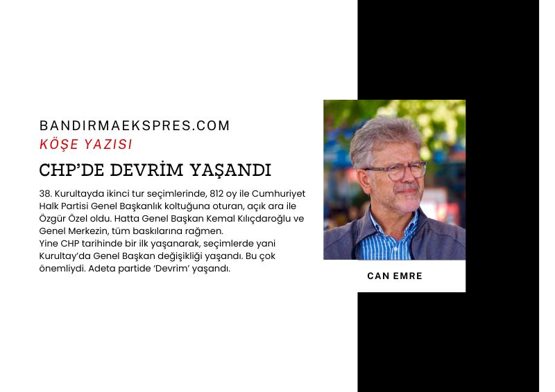 Sonuç olarak; evvelki gün yazdığım ‘CHP’ de Genel Başkan Kim Olur’ yazımda belirttiğim gibi bu seçimin gerçek kazananı, Ekrem İmamoğlu’dur. Onun değişim talebi, akşam gerçek oldu. Destek veren Özgür Özel’de Genel Başkan.