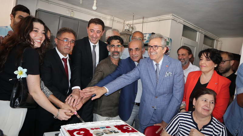 Ardından ilçe yönetimi ve parti üyeleri ilçe başkanlığı binasında pasta keserek kutlamalara devam etti.