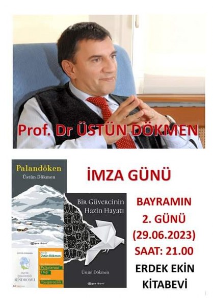 Psikolog, akademisyen, yazar Dökmen, 29 Haziran 2023 Perşembe, Kurban Bayramı’nın ikinci günü, Cumhuriyet alanındaki Ekin Kitabevi’nde, saat 21.00’de kitaplarını imzalayacak.