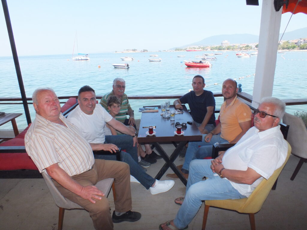“Kurbağalıdere” bölgesinde, “Bluemoon” çay bahçesinde buluşan Hürriyet Gazetesi Ekonomi Müdürü Sefer Levent, Bandırma Ticaret Odası Başkanı Âdem Yılmaz, başkan yardımcısı İlkay Yücebilgiç, Erdek’in eski turizmcileri Seçkin Arslan ve Recep Eren ile gazeteci-yazar Önder Balıkçı bir araya geldiler.