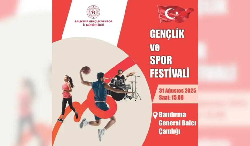 Gençlik ve Spor Bakanlığı tarafından 81 ilde eş zamanlı gerçekleştirilen Gençlik ve Spor Festivali, Bandırma’da da coşkulu bir programla kutlanacak. Bandırma Gençlik ve Spor İlçe Müdürlüğü’nün ev sahipliğinde düzenlenecek etkinlik, 31 Ağustos 2025 Pazar günü saat 15.00’te General Balcı Çamlığı’nda başlayacak.