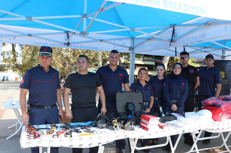 Balıkesir Büyükşehir Belediyesi Güney Marmara Gruplar Amiri Tarkan Tepeler, bilgilendirmelerde bulunarak “ İtfaiye Haftası nedeniyle vatandaşları afetlere hazırlama noktasında bilgilendirme ve bilinçlendirme çalışmaları yapıyoruz. Bu tanıtım stantlarımızı il genelinde tüm ilçelerimizde gerçekleştiriyoruz. Burada afetlerde kullandığımız ilk yardım ve kurtarma malzemelerimizi sergiliyoruz. Vatandaşlarımıza bu malzemelerin hangi konumda ve nasıl kullanacağımızı anlatacağız.” dedi. Güney Marmara Gruplar Amirliği bünyesinde 53 personel ve toplam 7 araçla çalışmaların sürdüğünü açıklayan Tepeler, “Güney Marmara Gruplar Amirliği bünyesinde 53 personel, 5 adet ilk müdahale aracımız, 2 merdivenli aracımız olmak üzere toplam 7 aracımızla çalışmalara devam ediyoruz.” dedi.