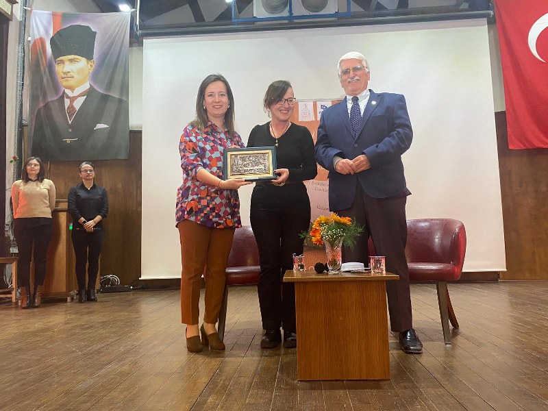 Söyleşinin ardından Bandırma Belediyesi Başkan Vekili Av. Merve Polat, Çinko’ya plaketini verdi.
