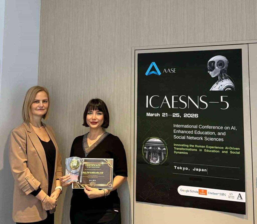 Tokyo’da gerçekleştirilen ve yapay zekâ, eğitim ve sosyal bilimlerin kesişimine odaklanan uluslararası konferansta sunulan “An AI-Driven Model Proposal for Department-Based Promotion Processes in Human Resource Management” başlıklı çalışma, alanında özgün yaklaşımı ve bilimsel katkısıyla dikkat çekti. İnsan kaynakları yönetiminde departman bazlı terfi süreçlerine yapay zekâ destekli bir model öneren çalışma, en iyi bildiri “Best Paper” ödülüne değer görüldü.