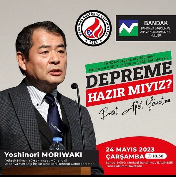 24 Mayıs 2023 Çarşamba günü, Santral Kültür Merkezi’nde, saat 18.30’da gerçekleşecek toplantıda, yüksek mimar, yüksek inşaat mühendisi, Japonya Yurtdışı İnşaat Şirketleri Derneği Genel Sekreteri Yoshinori Morıwakı konuşacak.